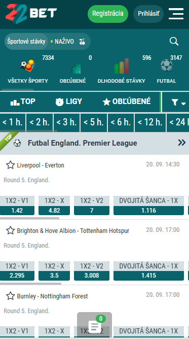 Stávky na šport na 22bet Slovensko